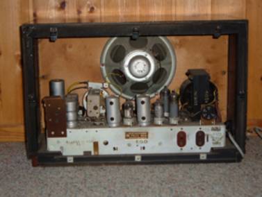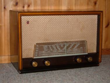 op de Deze radio is gelijk aan de BX390A, doch die heeft een bakelieten kast. Dit chassis is ook in de BX400A uit 1950 gebruikt. |